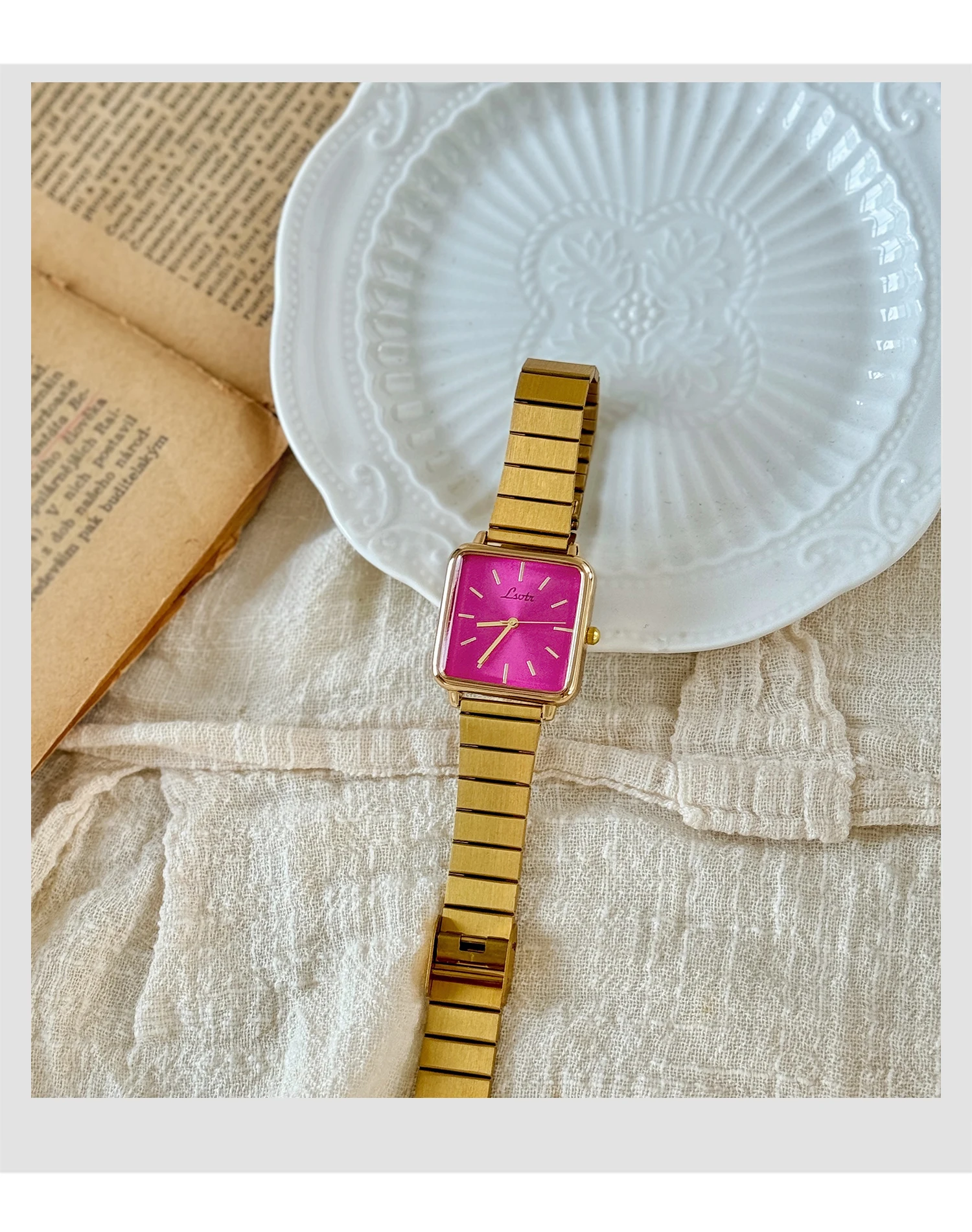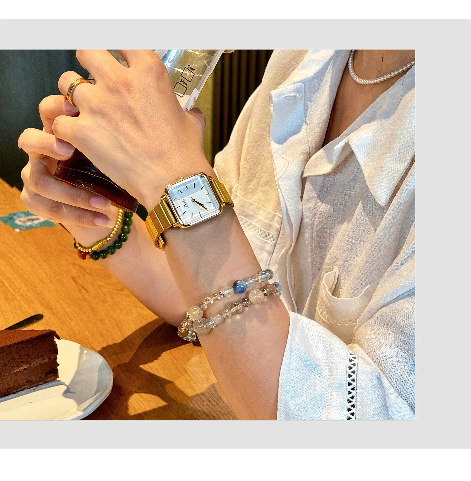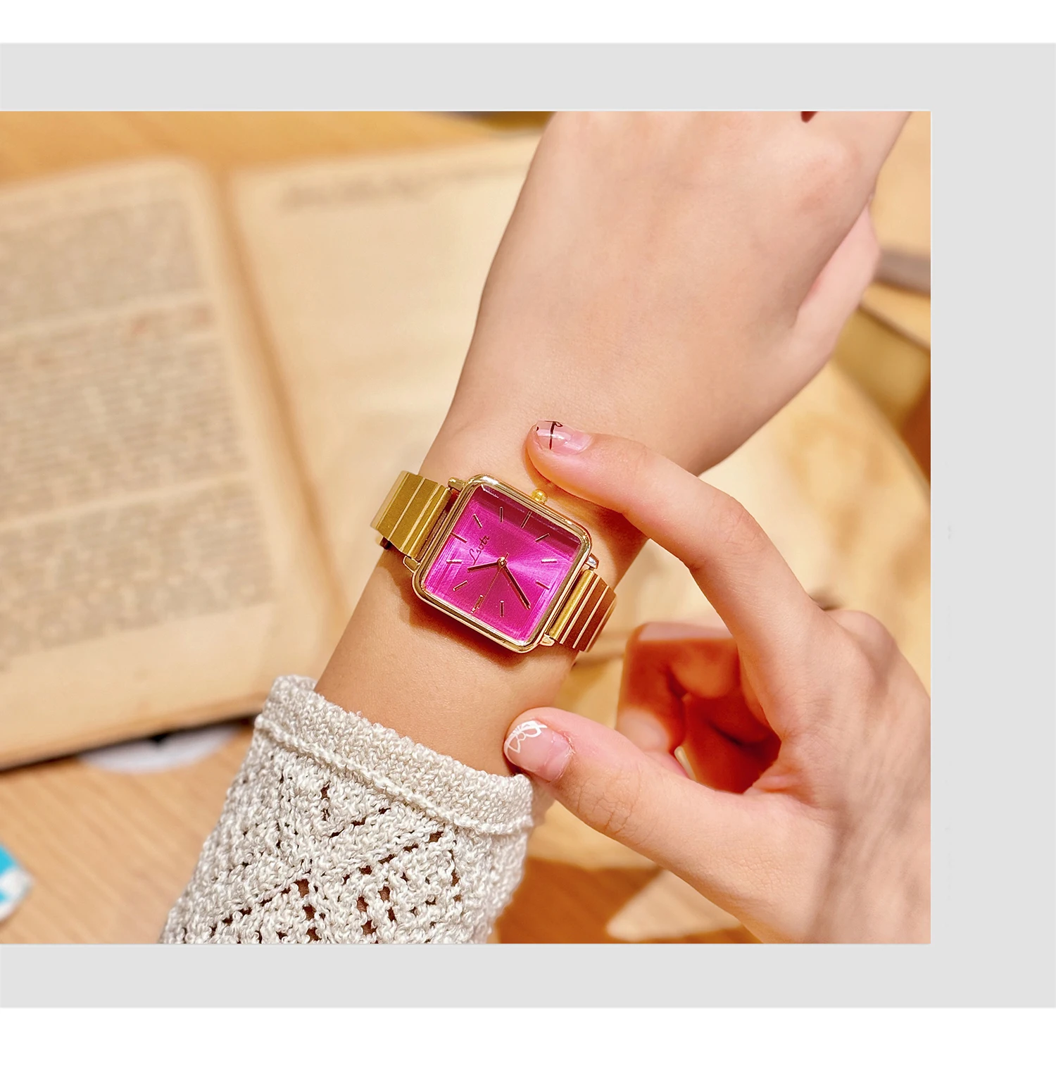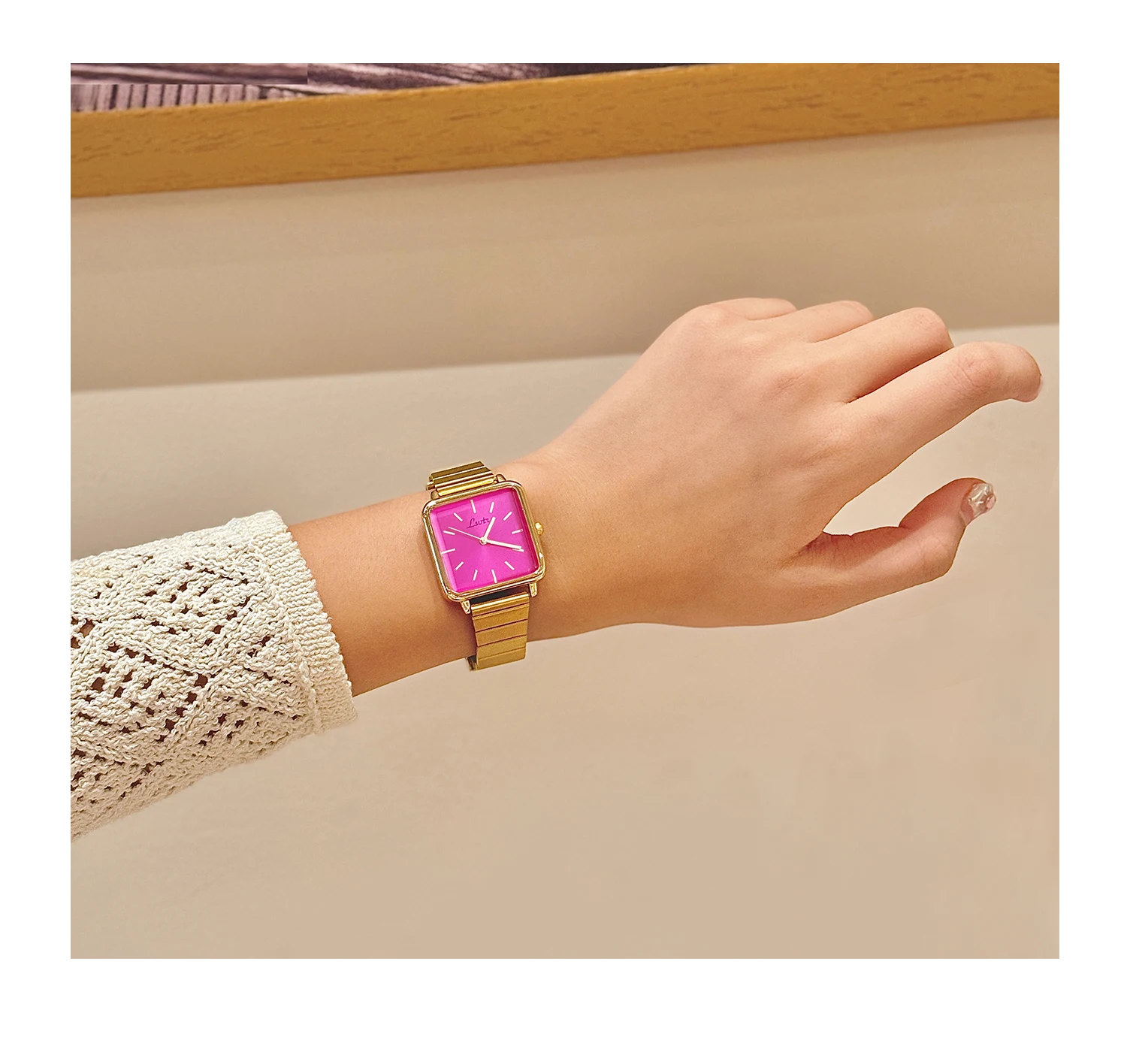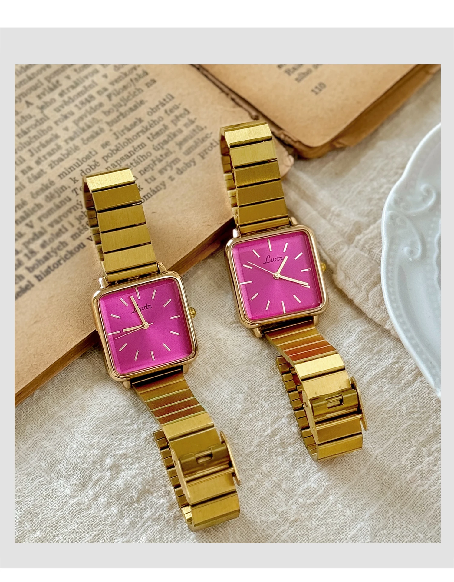 1 Piece of Gold Retro Simple and Elegant Women's Watch Stainless Steel Strap Quartz Watch Square Dial Casual Fashion Waterproof Women's Watch Suitable for Daily Wear Dinner and Other Occasions Decorative Wrist