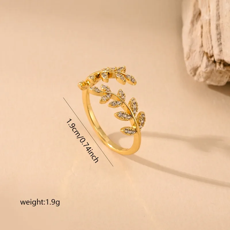 Crafted from 925 sterling silver with delicate zircon inlays, the ring features an open adjustable band shaped like intertwined olive leaves. Each zircon captures the light like morning dew, adding a soft, refined sparkle.